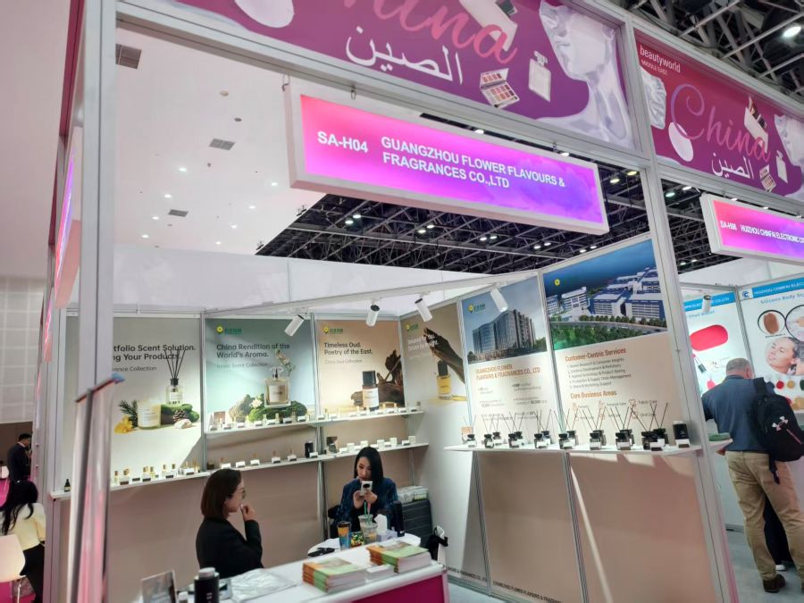 From October 27th to 29th, 2025, the 29th Middle East (Dubai) International Beauty and Hairdressing Supplies Exhibition (Beautyworld Middle East) successfully concluded at the Dubai World Trade Centre. As the largest edition to date, the exhibition successfully brought together over 2,500 exhibitors from 68 countries and more than 75,000 professional visitors, jointly sketching a new landscape for the beauty and fragrance industry. Amid this fragrance feast where East meets West, Guangzhou Flower Flavours & Fragrances using agarwood as a medium and carrying the charm of Eastern fragrance along with technological ingenuity, also presented an olfactory answer that transcends cultures.